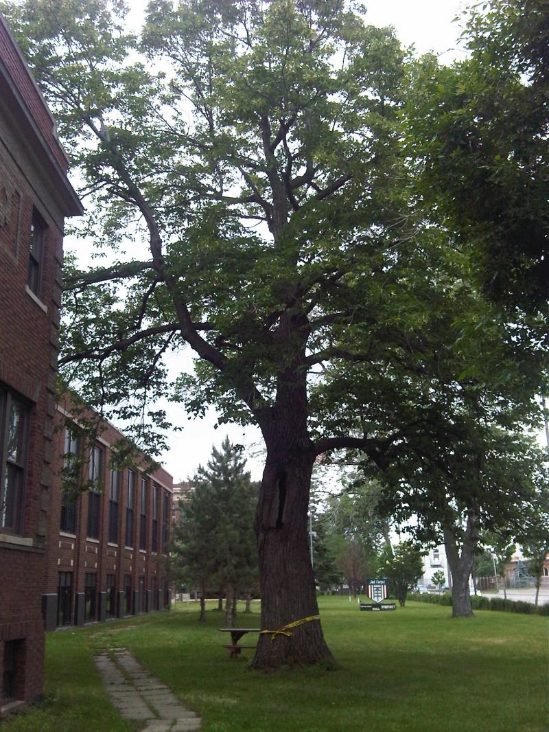 This Large Basswood looks fully green and healthy although it has a large wound...